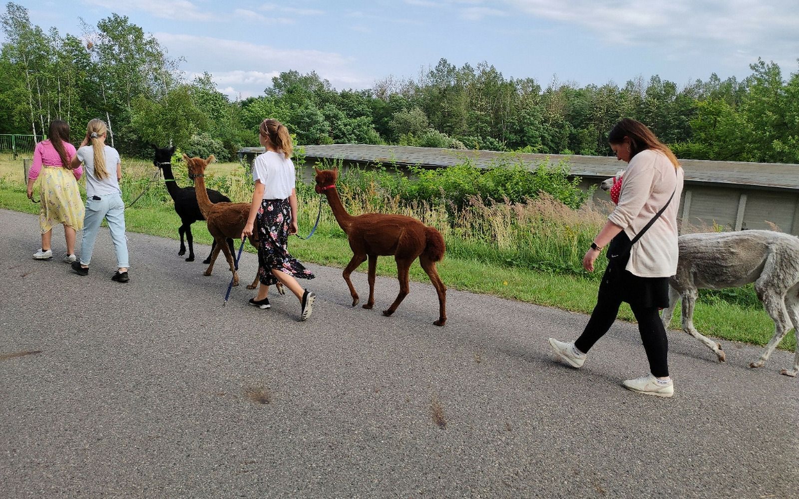 - Aus Sicherheitsgründen führen ein Kind und ein Erwachsener ein Alpaka/ Lama gemeinsam an 2 Leinen. Ab 12 Jahren ist eine Führung allein möglich.