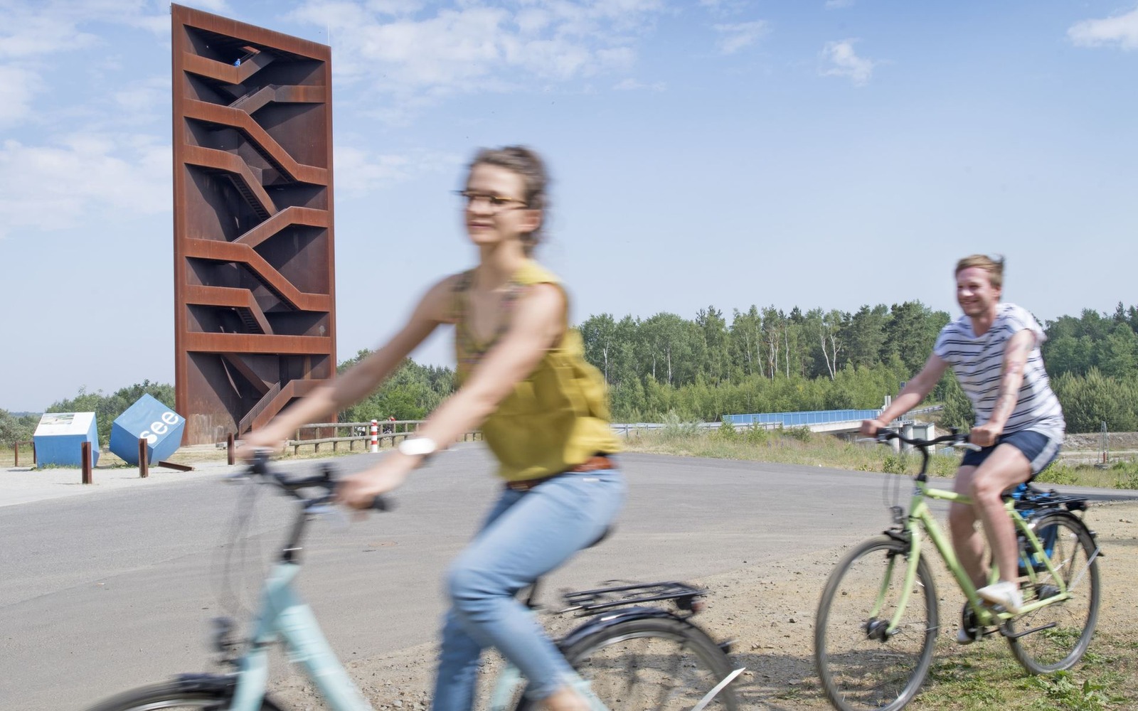 Radfahrer vor der Energiefabrik Knappenrode, Foto: Tourismusverband Lausitzer Seenland, Nada Quenzel