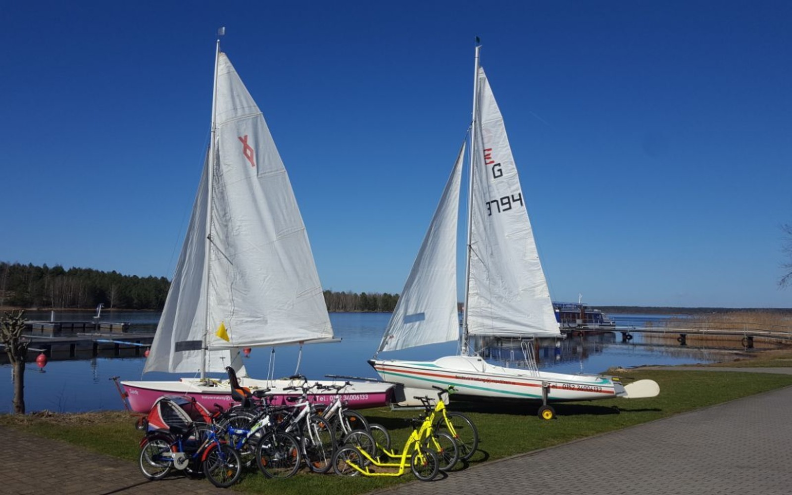 Small bike rental company situated directly in the Hafencamp marina camp in Großkoschen on Lake Senftenberger See. There are 30 modern trekking bikes for men and women to rent. There are also children’s bicycles and bicycle trailers for the very little. In terms of safety and security, locks and helmets are available free of charge; bicycle bags and baskets can be rented for a small charge.