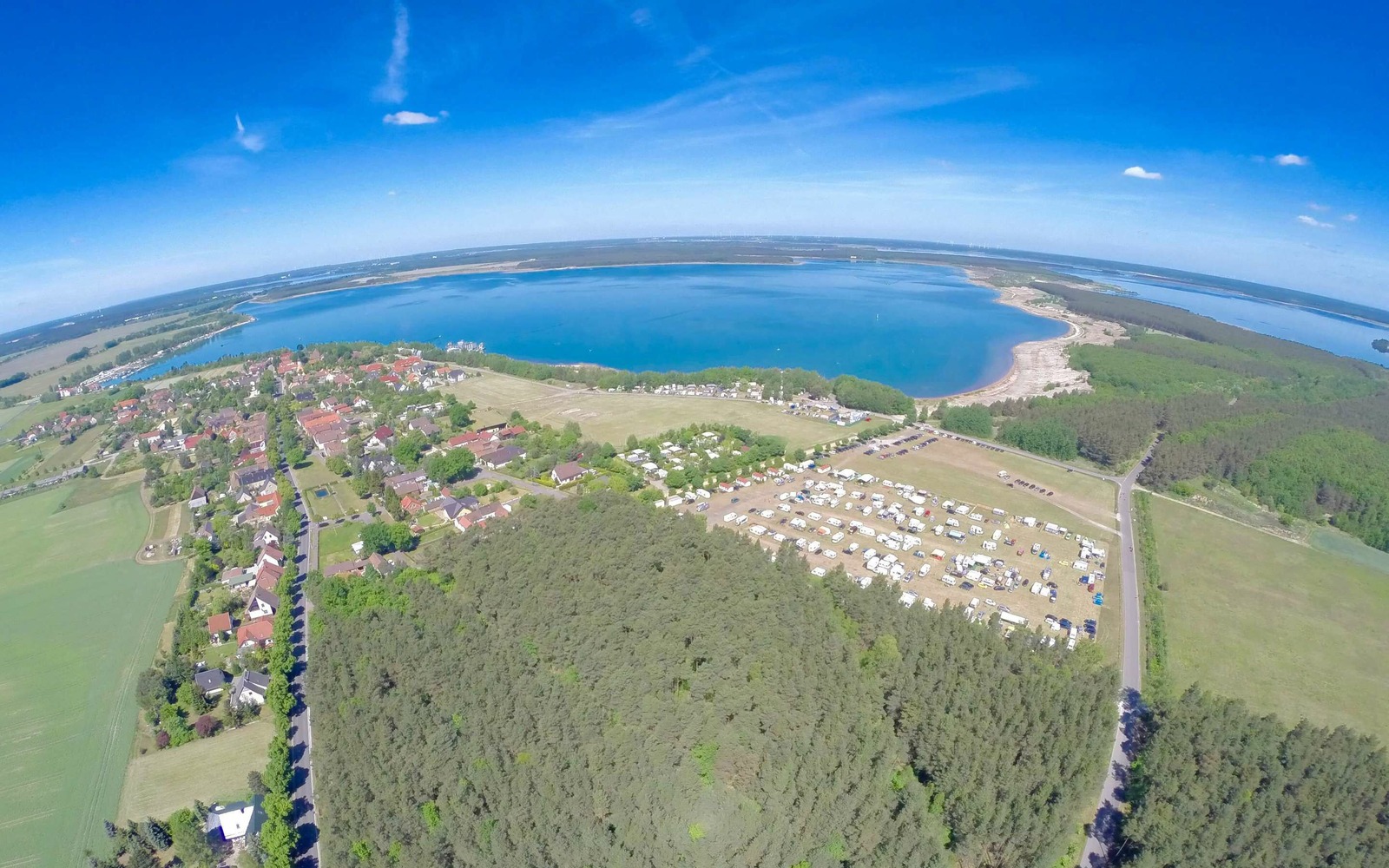 Der Badestrand des Geierswalder Sees liegt nur eine Fußminute entfernt und auch die tollen Rad- Wanderwege beginnen direkt vor der Wohnmobiltür.