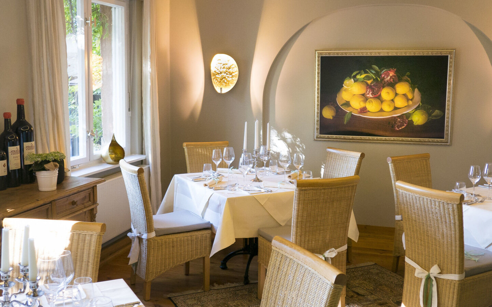 Between October and April, the tiled stoves will be fired up, so the salon and library with more than 600 cook books from all over the world provide a cosy atmosphere to enjoy delicately braised dishes such as succulent lamb shank or fine calf cheeks with matching red wines.
