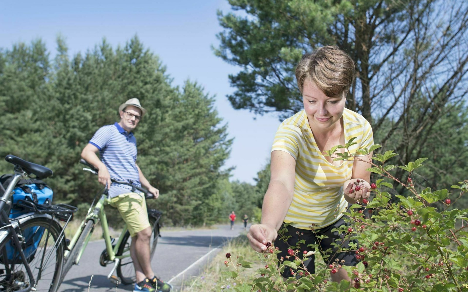 Cyclists pick berries on the cycle route around the Lake Scheibe, photo: Nada Quenzel
