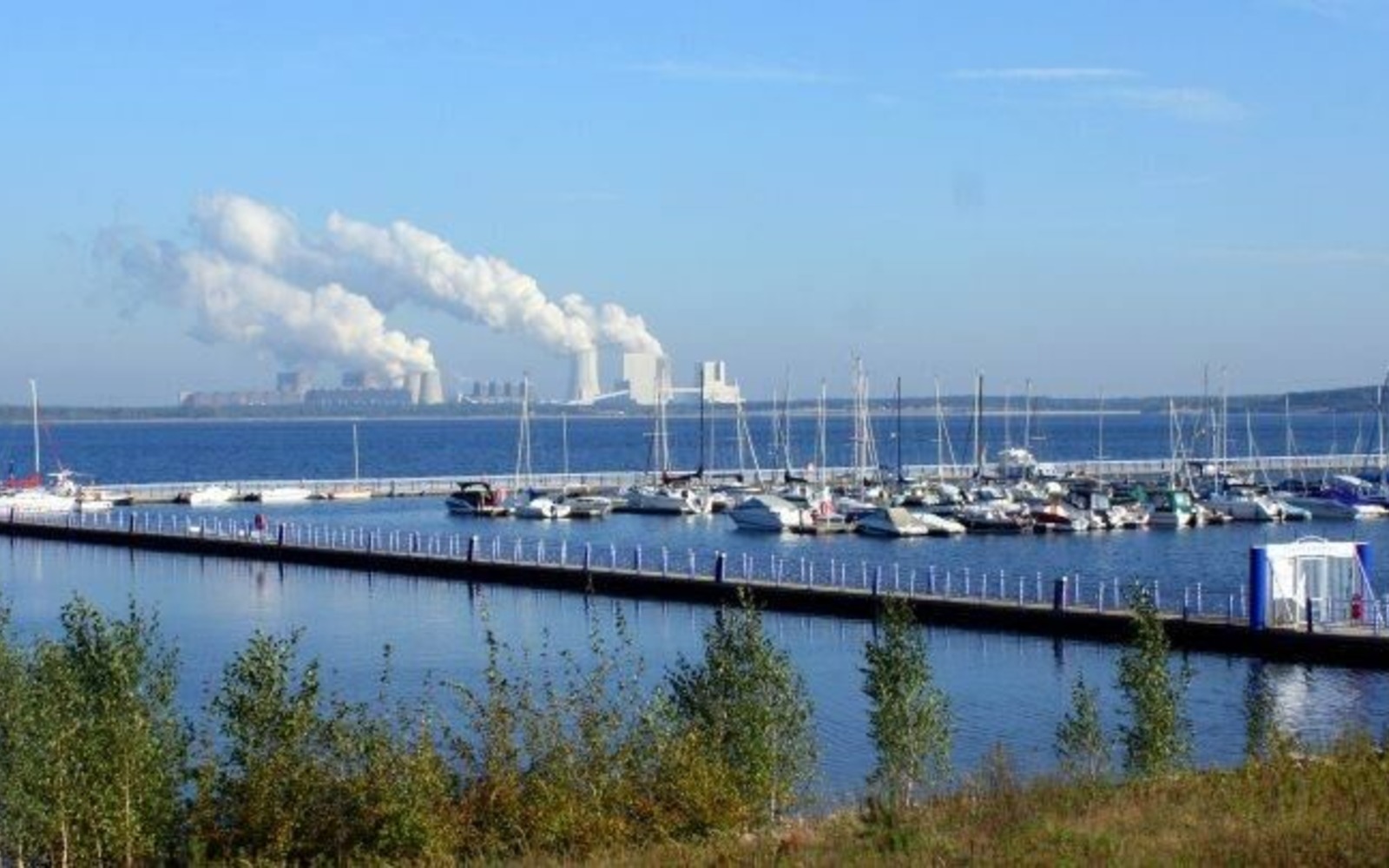 Lake Bärwalder See was created by flooding of the former Bärwalde lignite mine in the years up to 2010.